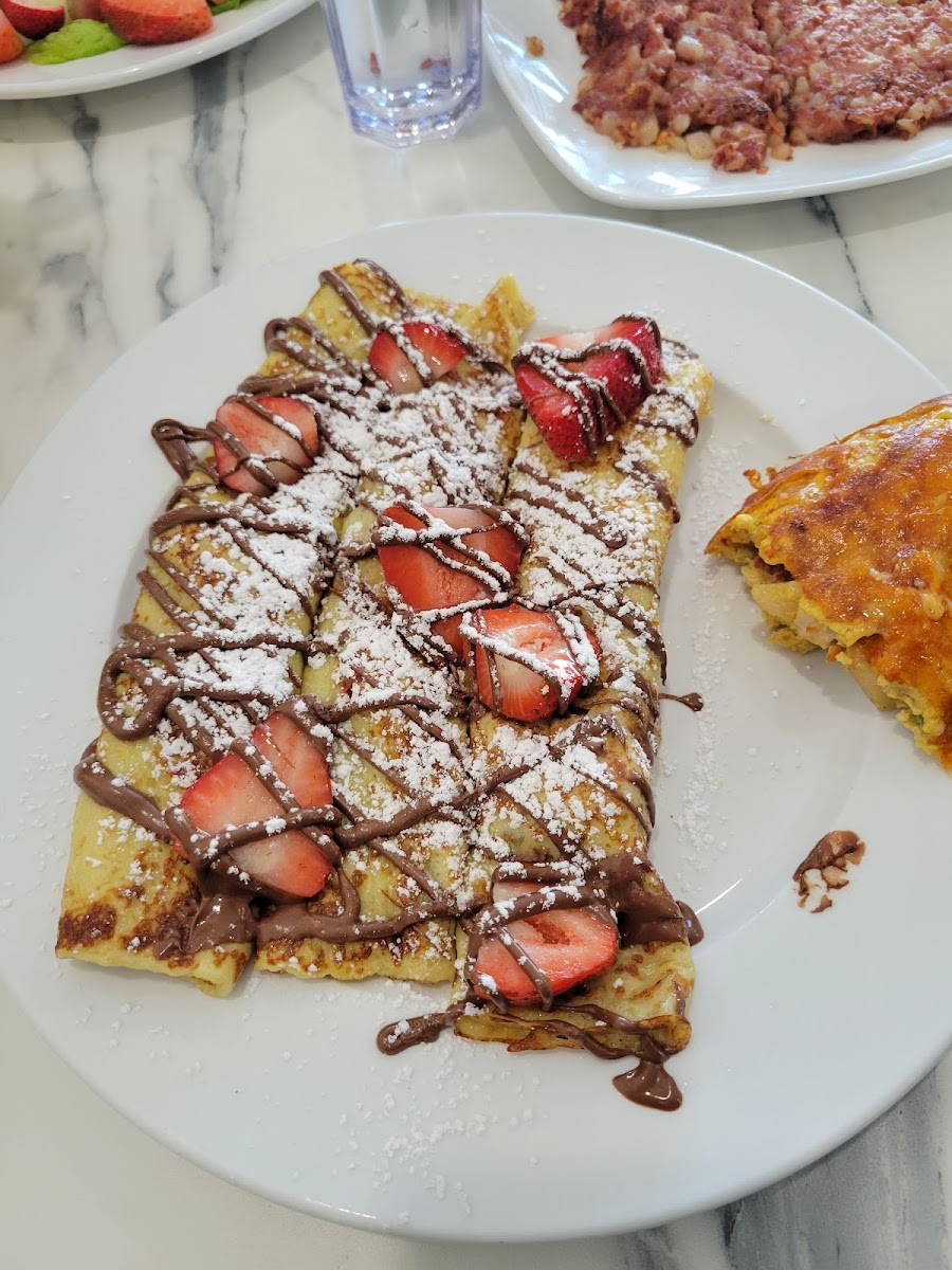 Very cute little diner! Amazing food with free coffee! Staff is very friendly. Went here with a friend and we shared strawberry Nutella crepes with some sausage links! Perfect serving for two people!