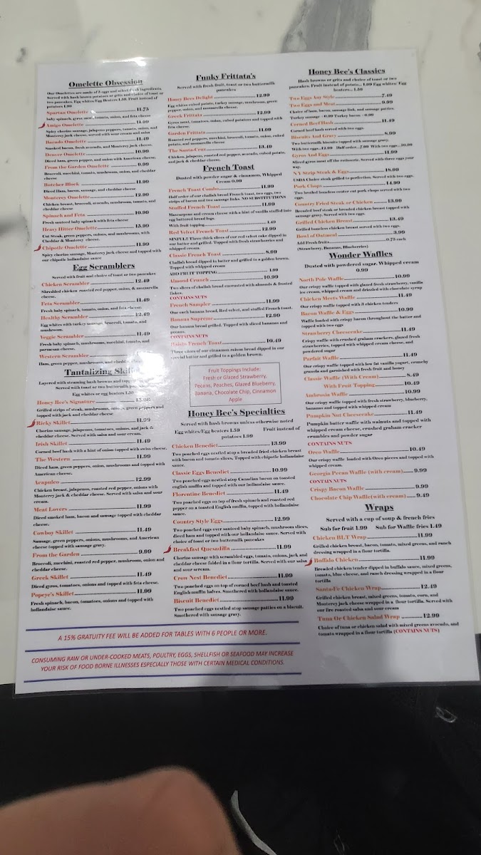 Overall, the menu supports a relaxed pace where guests can savor familiar flavors in a clean, inviting space. This makes Honey Bee Pancake House a welcoming spot for those looking to enjoy a straightforward, satisfying meal without fuss.